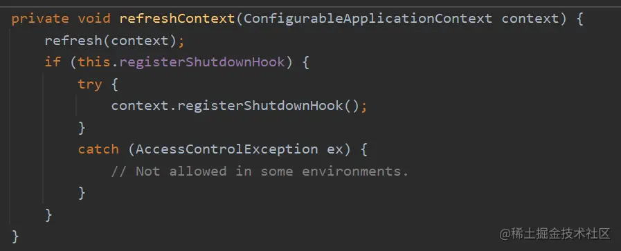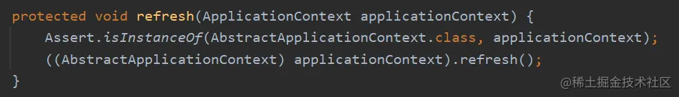 refreshContext(context);方法传入的是 context 上下文。当前传入的上下文是 ConfigurableApplicationContext类型的。