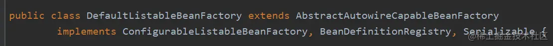 我们知道,这里传入的 beanFactory 类型为 DefaultListableBeanFactory,查看其类定义,实现了该接口。