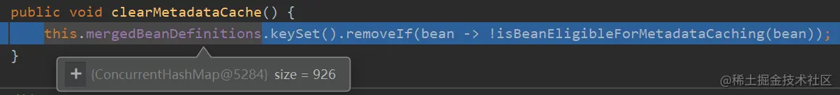 DEBUG 可知,在清除之前,mergedBeanDefinitions 存在 926 个元素: