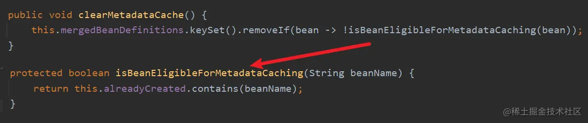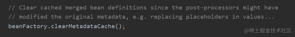 首先调用了父类 AbstractBeanFactory的clearMetadataCache()方法,如下: