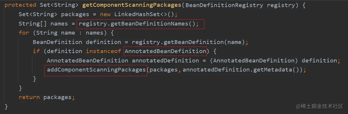 getComponentScanningPackages() 方法如下:
