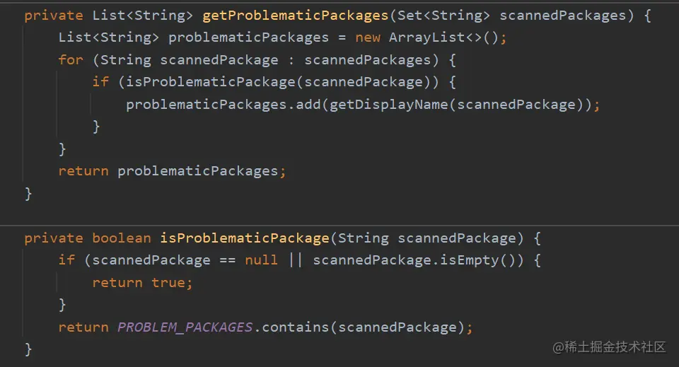 getProblematicPackages() 方法如下,就是判断了这些扫描的包路径是否存在问题。