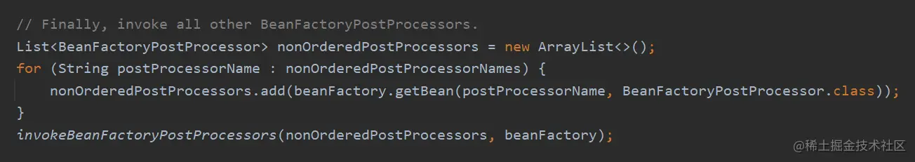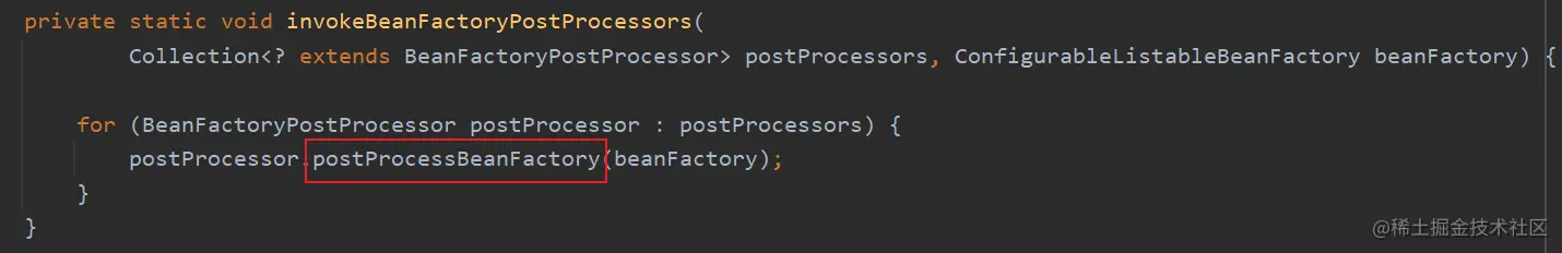 内部循环调用了 postProcessBeanFactory() 方法。( 注意和前面区分,调用的方法不同 )