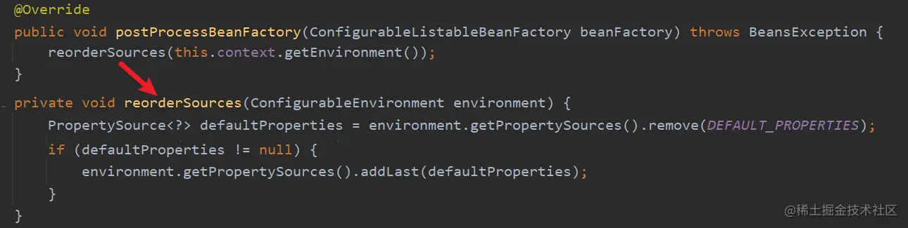 4.PropertySourceOrderingPostProcessor 的 主要作用是对默认的配置文件进行排序,如果存在的话,就将其放在最后一位。这里 DEBUG 是没有的。