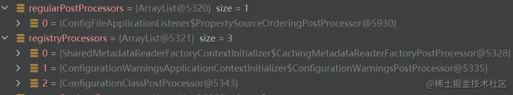 一个是List<BeanFactoryPostProcessor>和List<BeanDefinitionRegistryPostProcessor>。