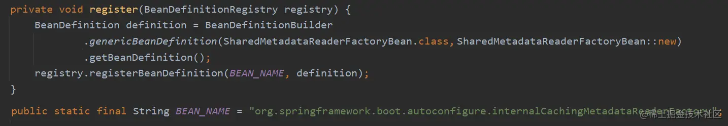 将SharedMetadataReaderFactoryBean注册到了 beanDefinitionMap 中,key 见上图。