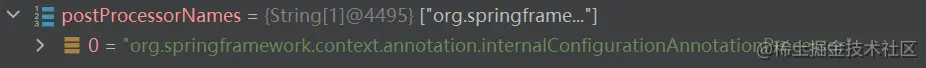 这里在 DEBUG 时发现,获取到的 postProcessorNames 依旧只有 ConfigurationClassPostProcessor,而其已经处理过了,所以这块实际上没有执行任何操作。