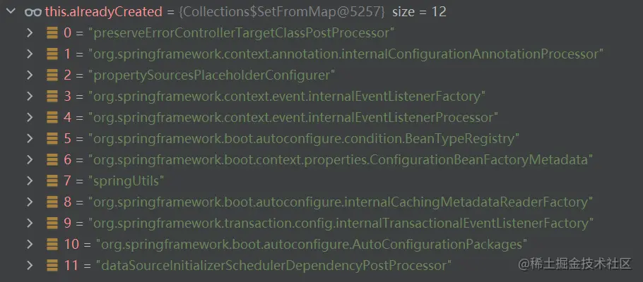 alreadyCreated 中存在 12 个元素如下: