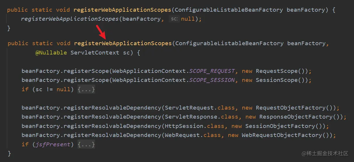 进入 registerWebApplicationScopes() 方法如下: