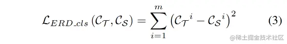 来自分类头的软预测依赖于教师检测器发现的各种类别的知识。 通过软预测的学习,学生模型可以继承隐藏的知识,这对于分类任务很直观。设 T 为教师模型,使用 SoftMax 将 logits CT 转换为分布,则输出概率分布 PT 定义为 公式(2)。类似地,将学生模型 S 的 PS 定义为 PS = SoftMax(CS/t),其中 t 是软化 PT 和 PS 概率分布的温度因子。
