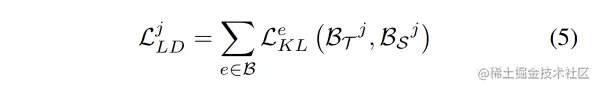 因此,咱们可以从教师检测器 T 中提取 bounding box B 的增量定位知识,并使用 KL散度损失将其传递给学生检测器 S,如公式(5)。