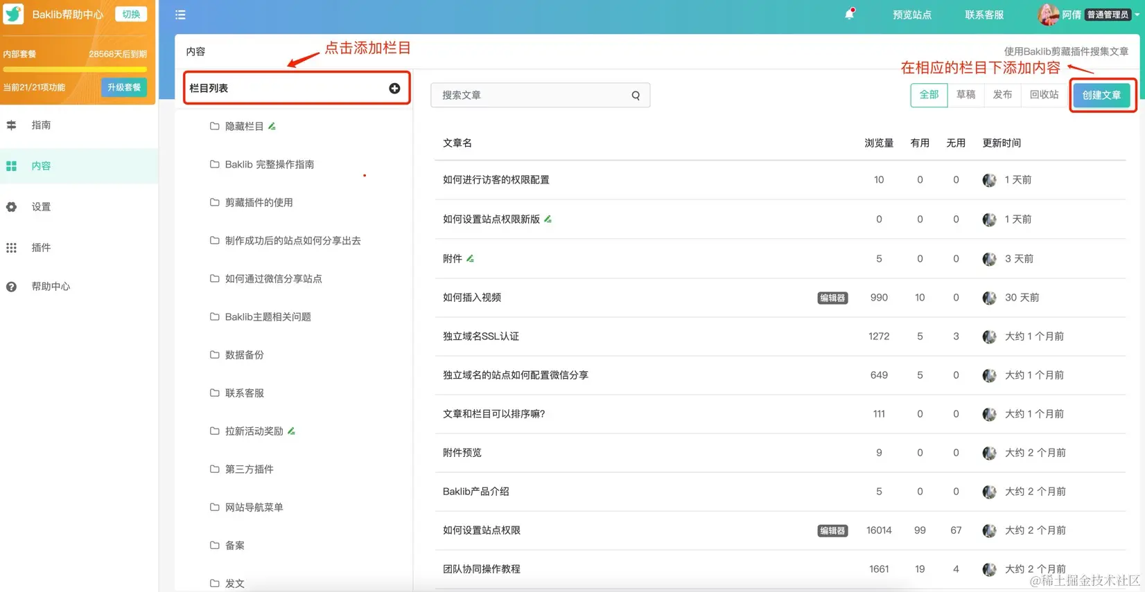 - 多级栏目设置,内容分类管理,知识结构化,展示清晰有条理;