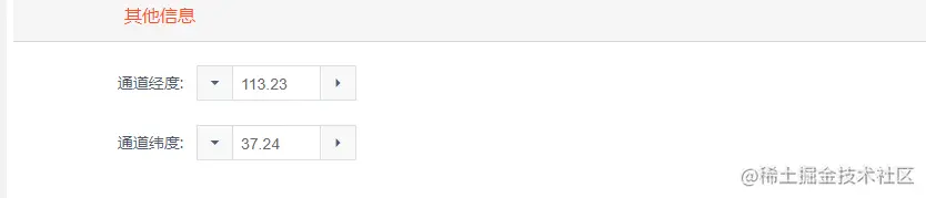 如上图所示,经度在用户填写0以下时,左侧的按钮会将不允许再进行点击,并且用户输入的值小于0时会自动变为0;同理,纬度左右按钮限制在-90 ~ 90。