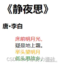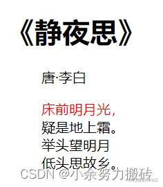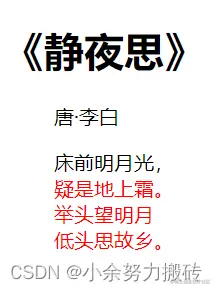 例如:如果要求处理古诗第一句,其他都是红色