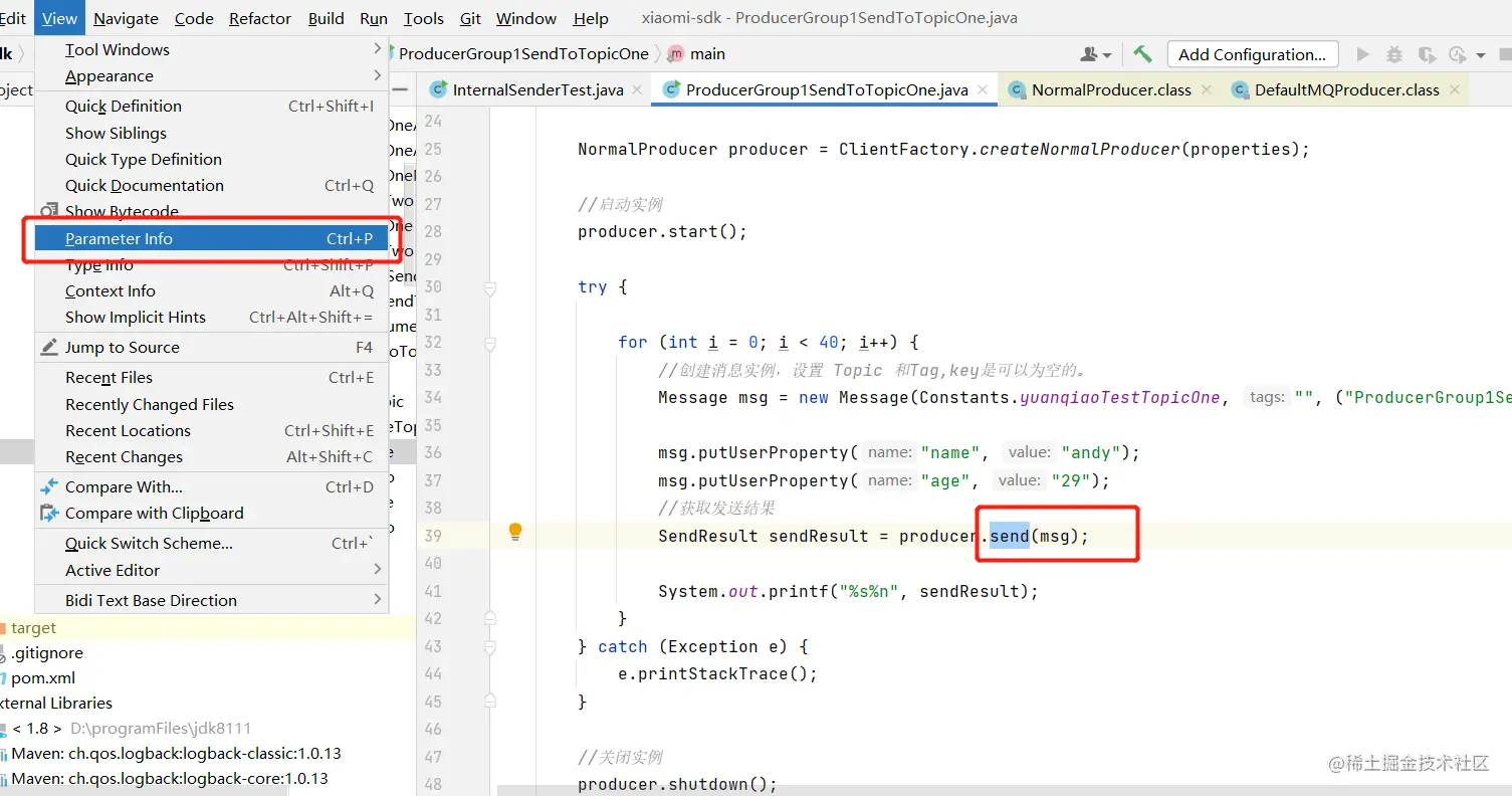idea如何查看方法的重载? andy爱学习爱分享 2022-09-27 357 阅读1分钟 很多时候同名的方法有很多,我们不知道到底该用那个重载方法时候,怎么查看所有的重载方法呢? 答案是: 选中要查看的方法--------------》View---------->Parameter Info(Ctrl+P)