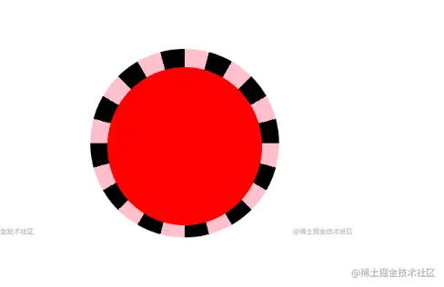 background-image: conic-gradient(pink 0 15deg, black 0 30deg):表示的是在0-15°使用的是pink颜色,在0到30°上使用的black颜色,先定义的颜色的层叠在后定义的颜色之上(左下角图)