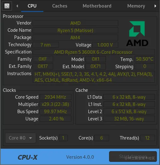 2、CPU-X:一款显示电脑 CPU、主板等信息的免费工具。能够显示设备的 CPU、主板、内存、显卡、操作系统等信息,支持 GUI 和命令行两种启动方式,适用于 Linux 和 FreeBSD 操作系统。