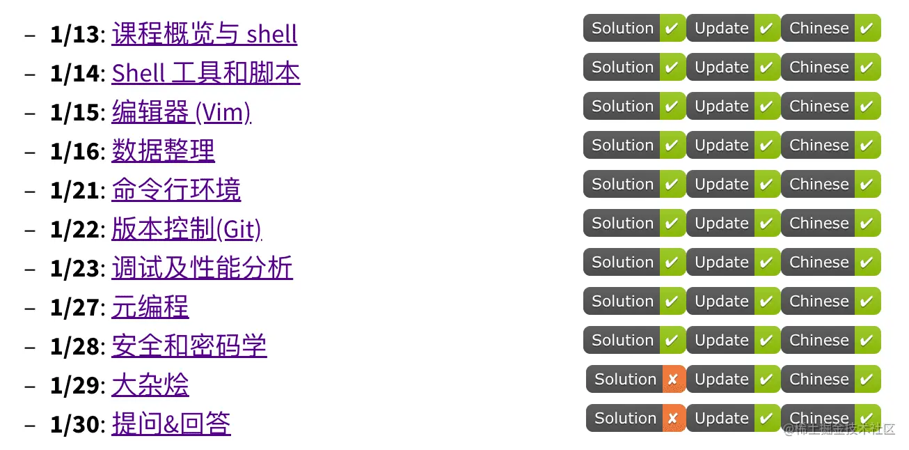 37、missing-semester:大学计算机教育中缺失的一课。大学里的计算机课程往往只专注于讲授数据结构、操作系统这些知识,对于编程开发中常用的工具则留给学生自行学习。在 MIT 这个课程中,你可以了解和掌握命令行(shell)、文本编辑器(Vim)、版本控制系统(Git)等强大的工具,越早接触越能更加熟练地使用它们,有助于未来的职业生涯。