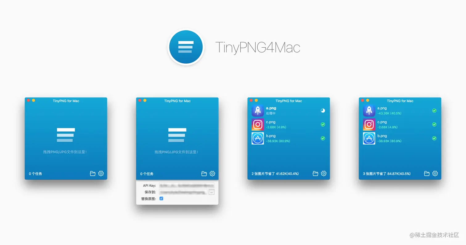 35、TinyPNG4Mac:适用于 macOS 的 TinyPNG 第三方客户端。TinyPNG 是一个提供免费图像压缩服务的网站,该项目是其第三方 macOS 客户端,可以让你无需打开浏览器、无需手动下载图片,仅通过简单的拖拽就能完成对 JPEG、PNG 图片的压缩。