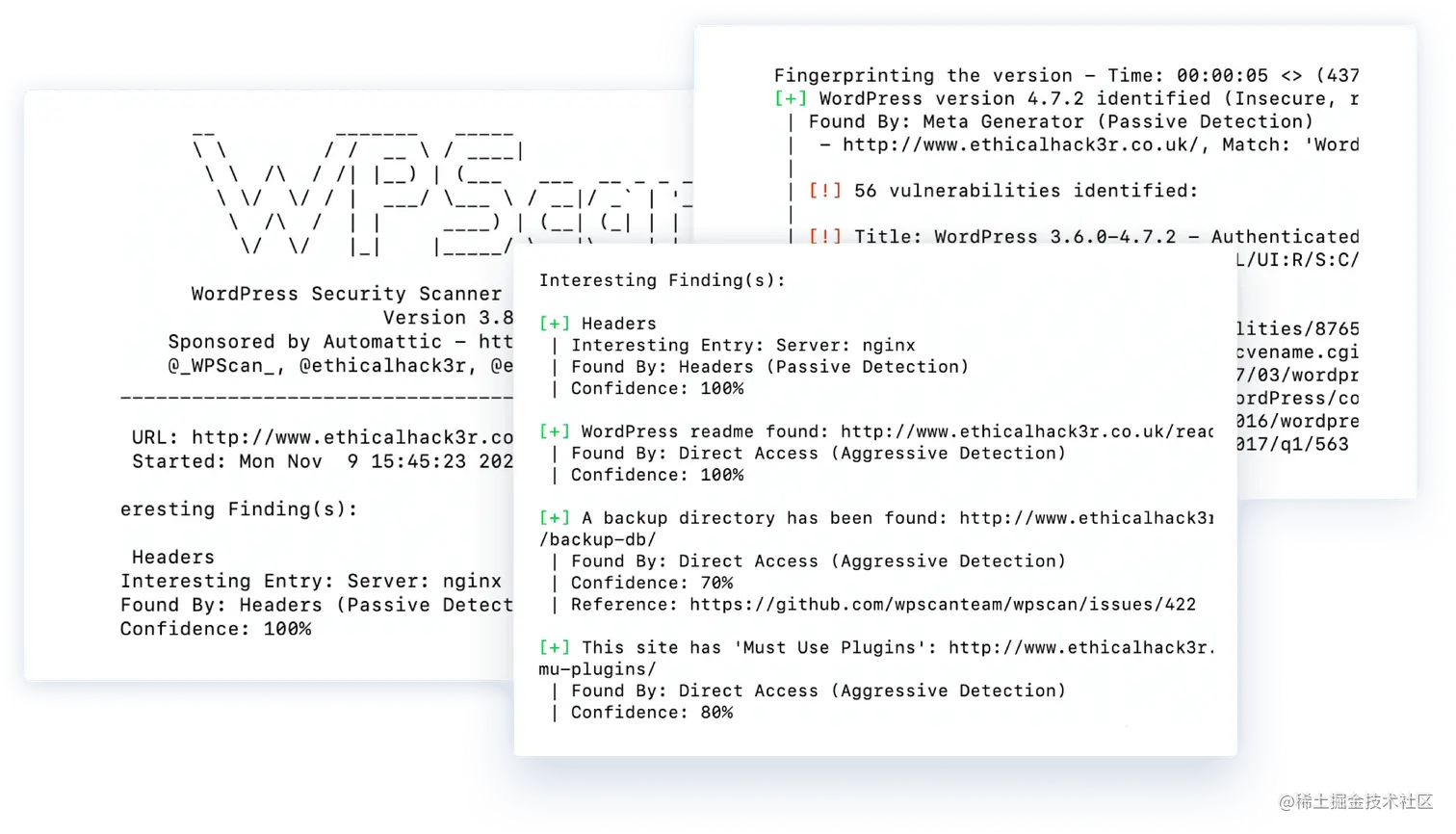 32、wpscan:一款 WordPress 安全扫描工具。该项目可用于发现 WordPress 构建的网站存在的安全隐患,扫描项包括 WordPress 漏洞、已安装的插件和主题、弱密码等。