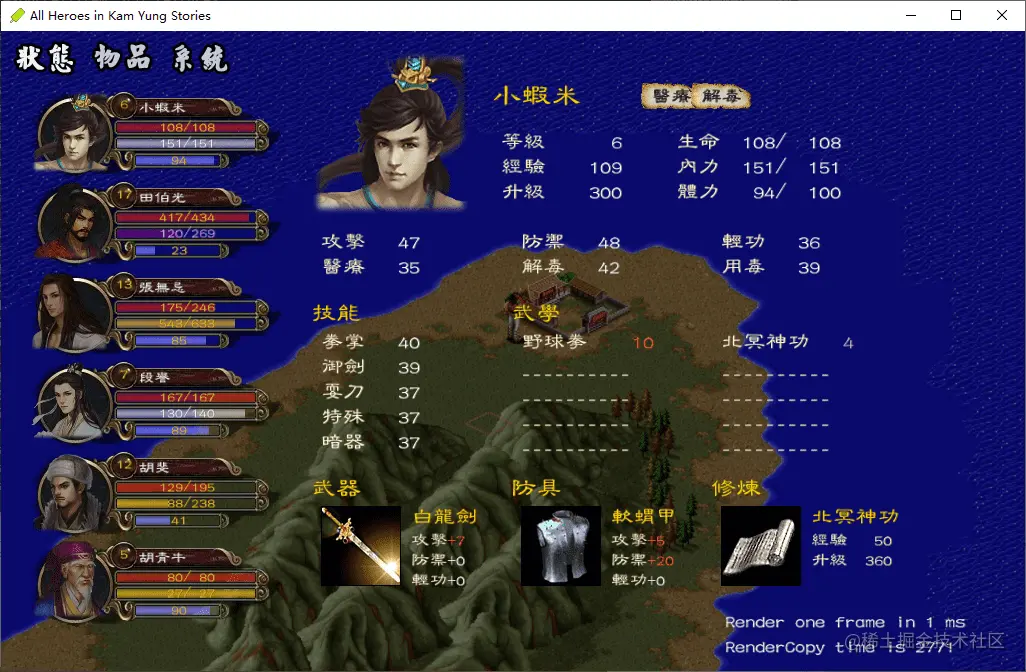 7、kys-cpp:游戏《金庸群侠传》的 C++ 复刻版。基于 SDL2 开发的《金庸群侠传》游戏,资源大部分来自 DOS 版本,目前已完工可以正常运行。