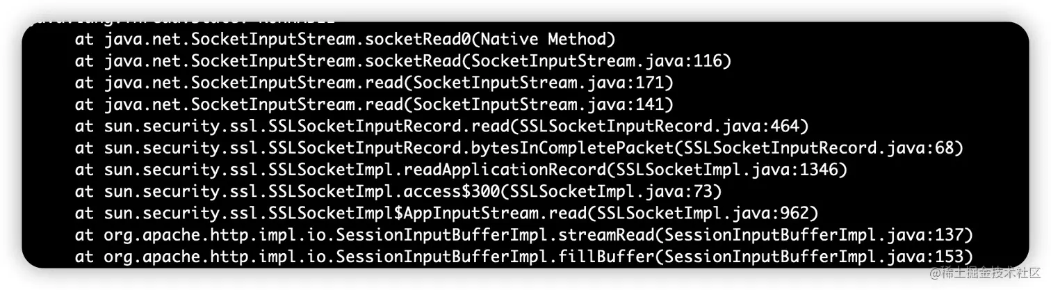 2、分析线程堆栈,发现某个异常点... 堆栈中看起来都在socket.read
