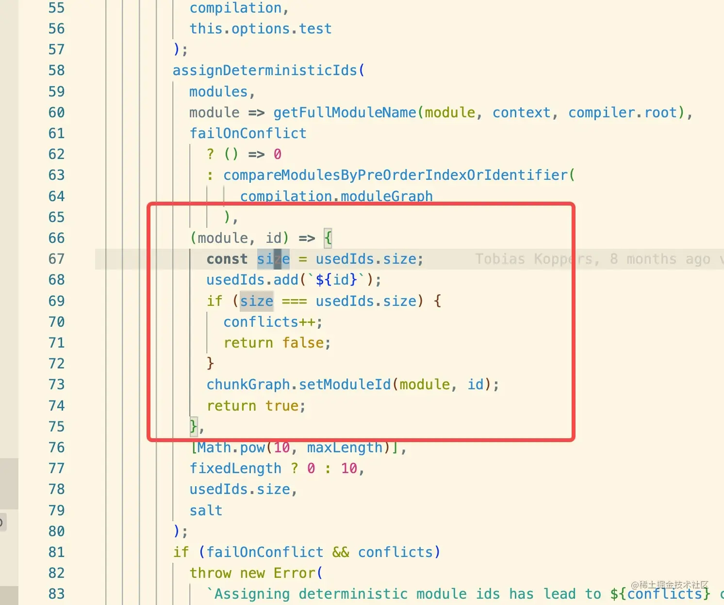 定位到文件,lib/ids/DeterministicModuleIdsPlugin.js下,看代码不一定知道是什么逻辑,不过看名字却很清楚了,是处理DeterministicModuleIds的一个插件函数。