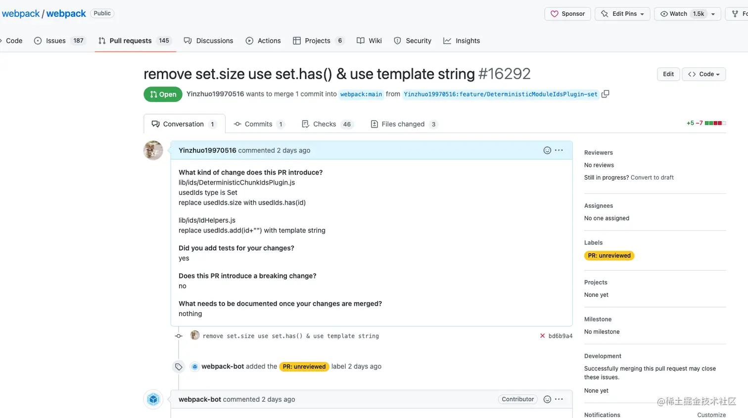 pr 如下,github.com/webpack/web…,目前还是unreviewed状态。