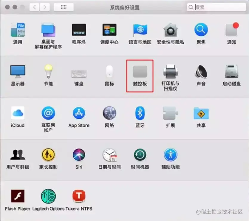 使用触控板来切换虚拟桌面之前,需要先在系统偏好设置中,对触控板进行相应的设置。