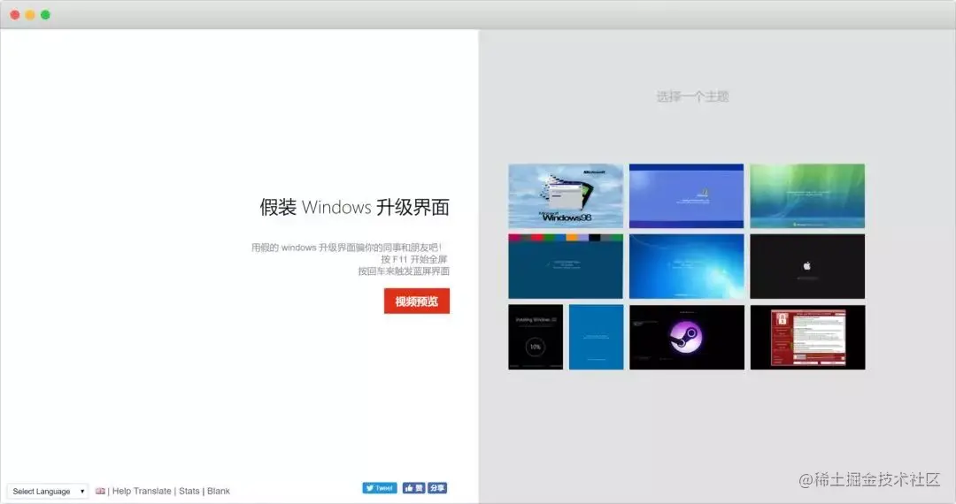 fakeupdate,是一个模拟各种系统更新的网站,网站给出了适合多个系统的模拟界面,包含Windows98、WindowsXP、Windows Vista、Win7、Win8、Win10和Mac OS系统。