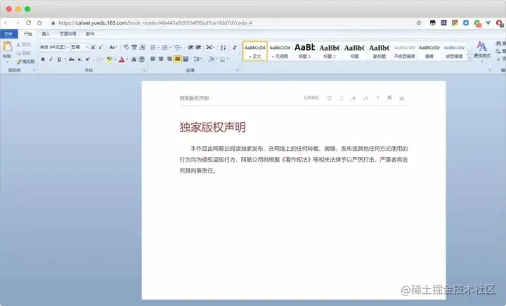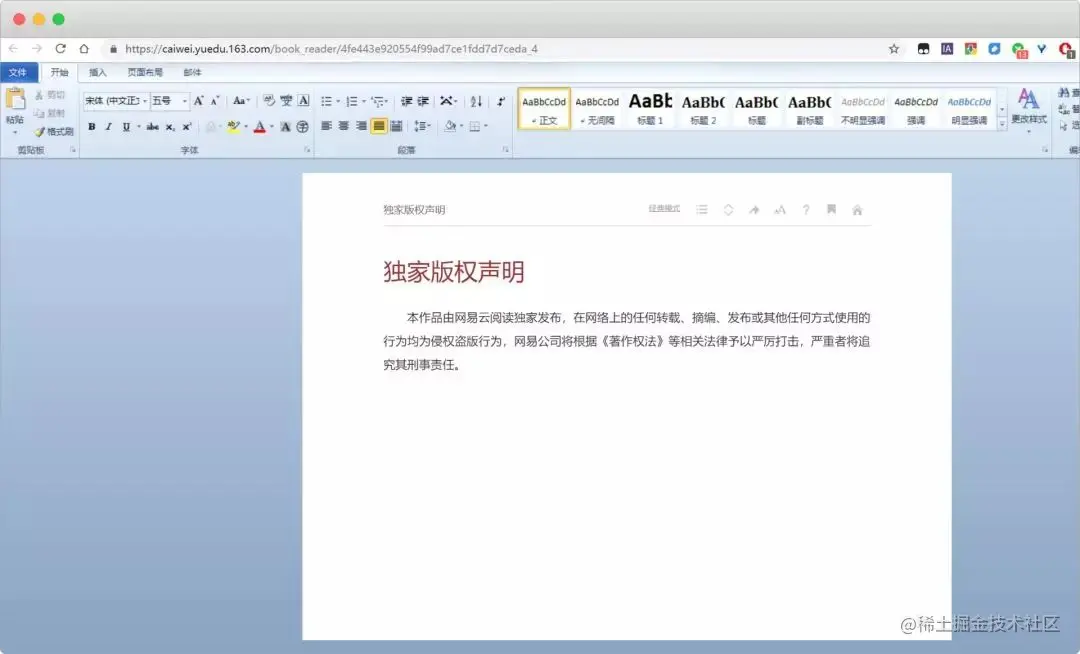 网页版的网易云阅读自带了word模式的阅读界面,可以将你在阅读的小说,伪装成Word的界面,让远处的人以为你在办公ing。