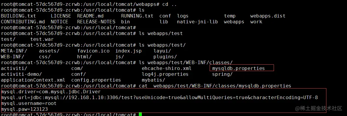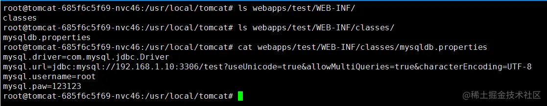 \cp /tmp/mysqldb.properties /usr/local/tomcat/webapps/test/WEB-INF/classes/mysqldb.properties