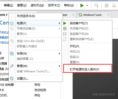 虚拟机右键-->电源--> 打开时进入固件-->选择Boot--> 将CD-ROM Drive项调整至第一位 --> 按F10保存重启