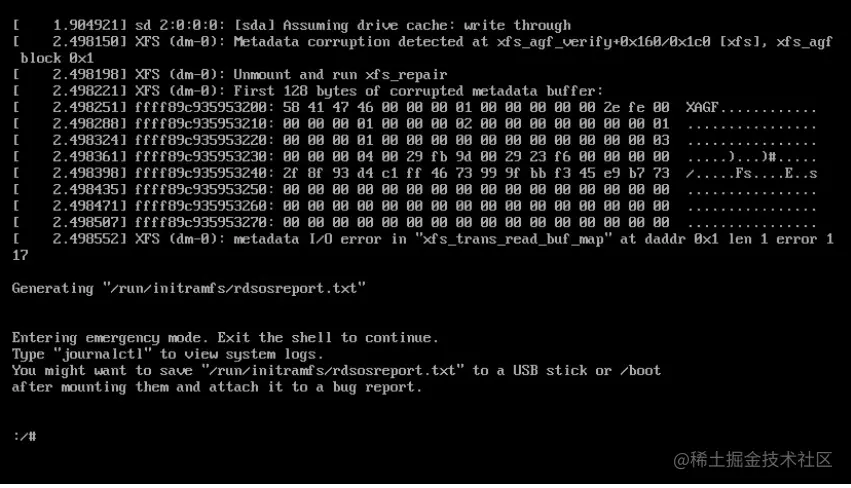 # xfs_repair /dev/centos/root 然后会跑一堆日志
