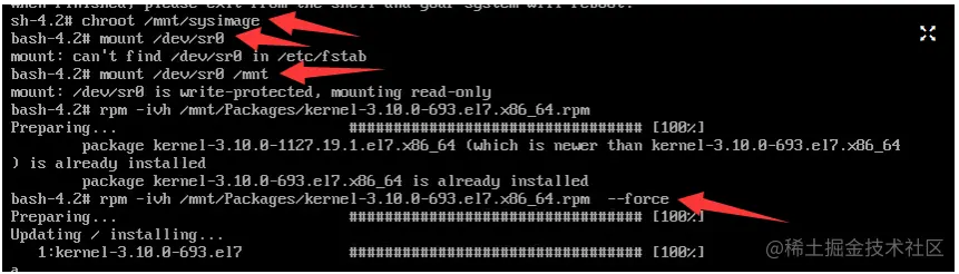 rpm -ivh /mnt/Packages/kernel-3.10.0-693.e17.x86__64.rpm --force