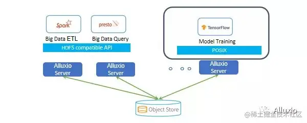 同时,Alluxio提供多种不同的API适用于不同的场景。在我们的训练场景下,提供了POSIX API,让训练可以像使用本地文件夹一样去使用我们的远端数据源。