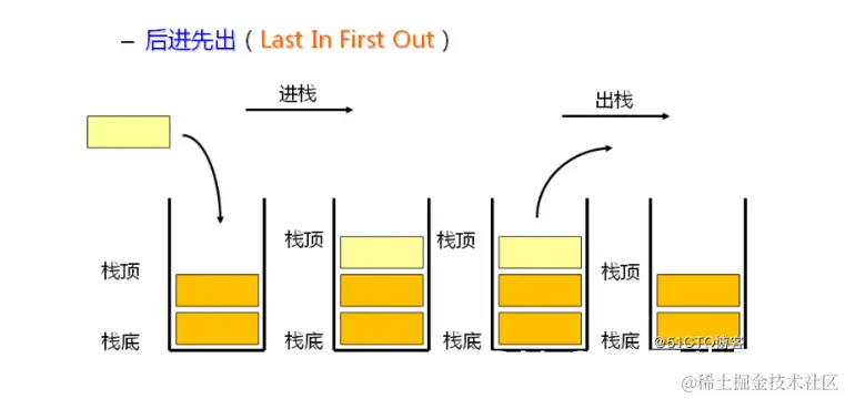 栈中的数据元素遵守后进先出 LIFO ( Last In First Out )的原则