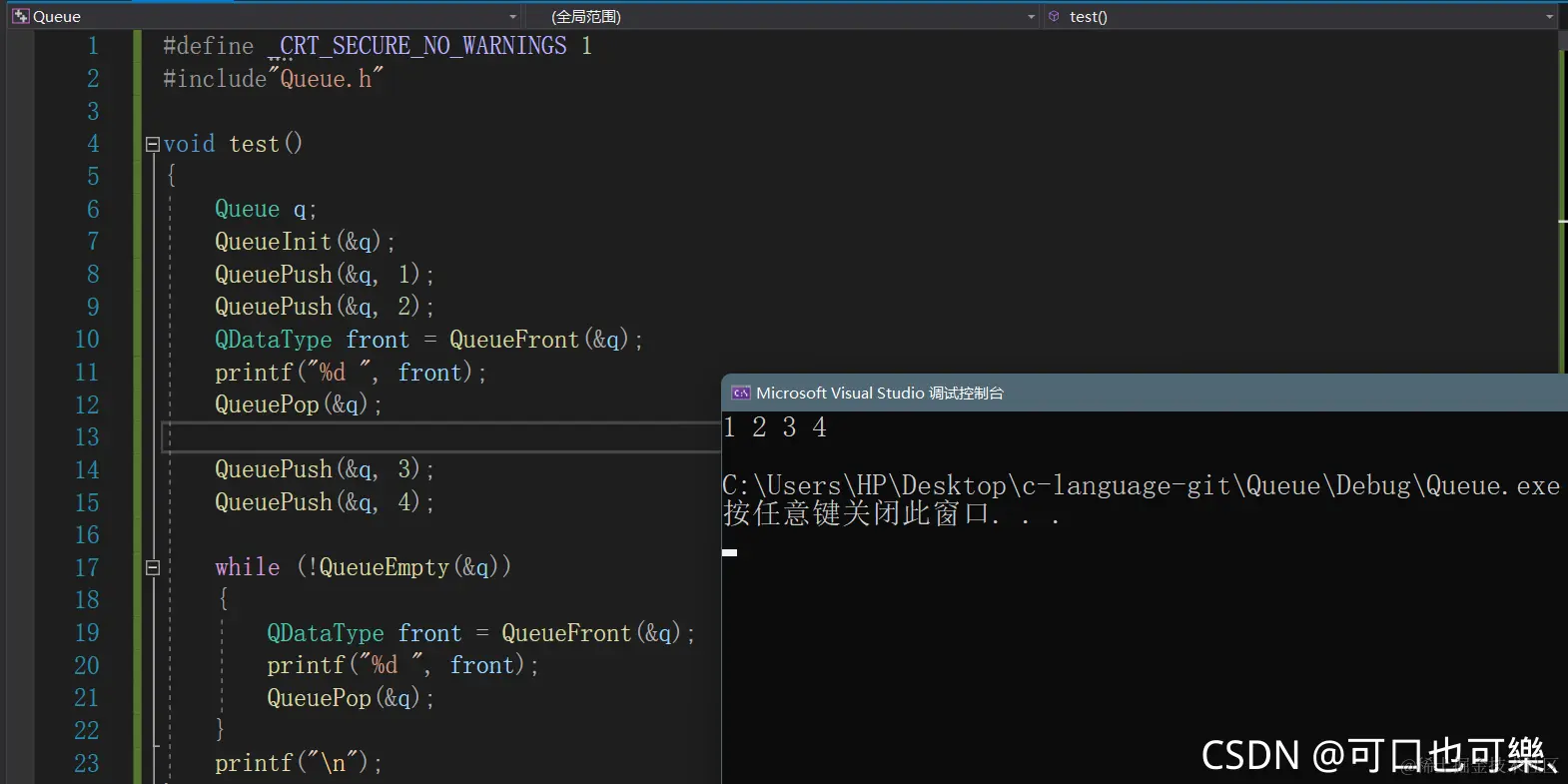 QDataType front = QueueFront(&q);