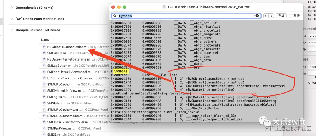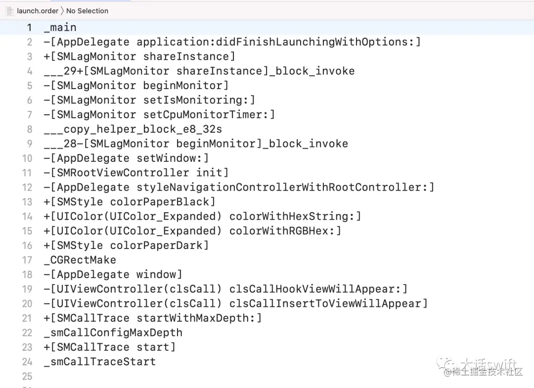 最后将文件粘贴入launch.order中即可实现加载的重排(下图是objc文件参考)