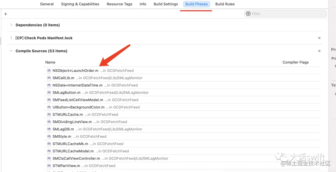 调整Build Phases--Compile Souurces的文件顺序--将NSObject+LaunchOrder置顶