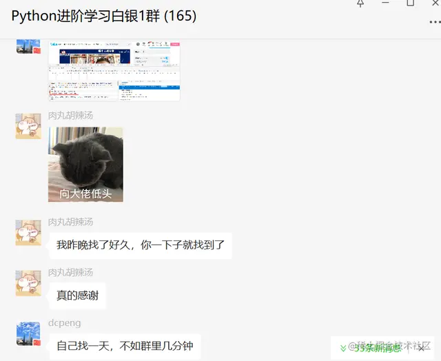 最后感谢粉丝【肉丸胡辣汤】提问,感谢【dcpeng】、【此类生物】给出的思路和代码解析,感谢【甯同学】、【greenHandPyer】等人参与学习交流。