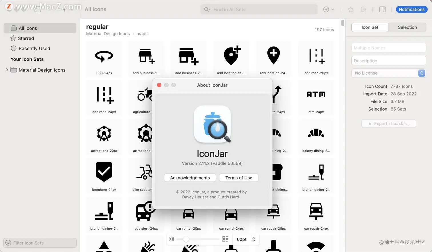 使用方法简单,拖入式导入管理,可以设置多个“Set”组合来分类管理图标,支持SVG/PNG/GIF三种图标格式。此外,iconjar mac还能够分类管理,帮助我们管理和查找图标图片素材,极大的提高设计师们的素材库使用效率!