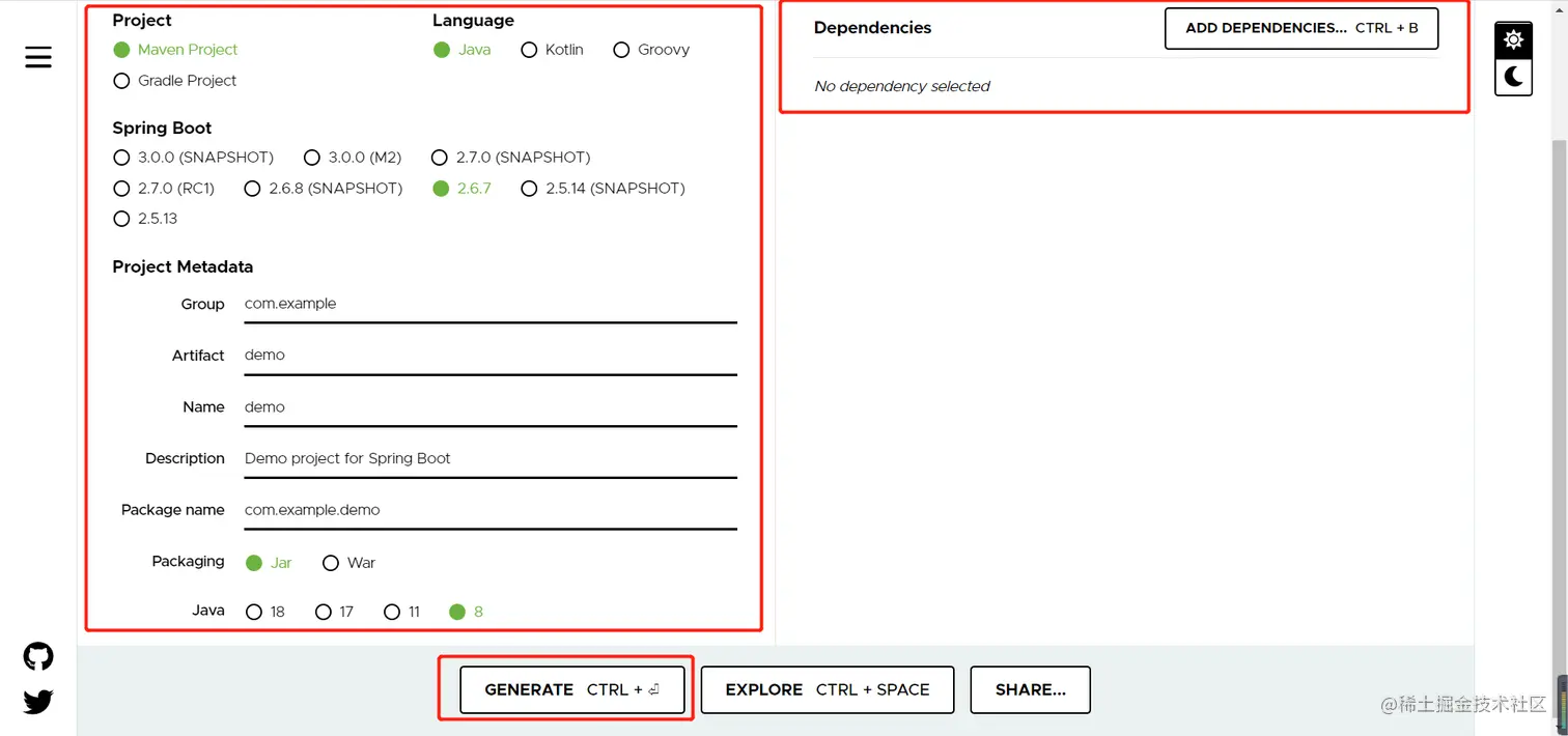 打开start.spring.io/ 生成 Spring Boot 项目。