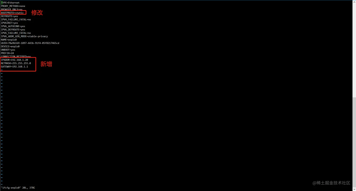 vi ifcfg-enp1s0 //注释:进入网卡配置文件