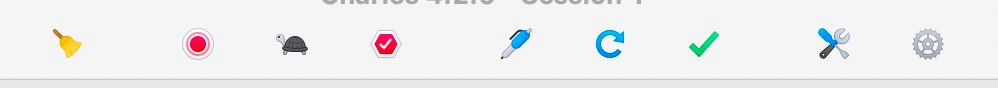 Charles 顶部为菜单导航栏,菜单导航栏下面为工具导航栏。视图如下图所示: