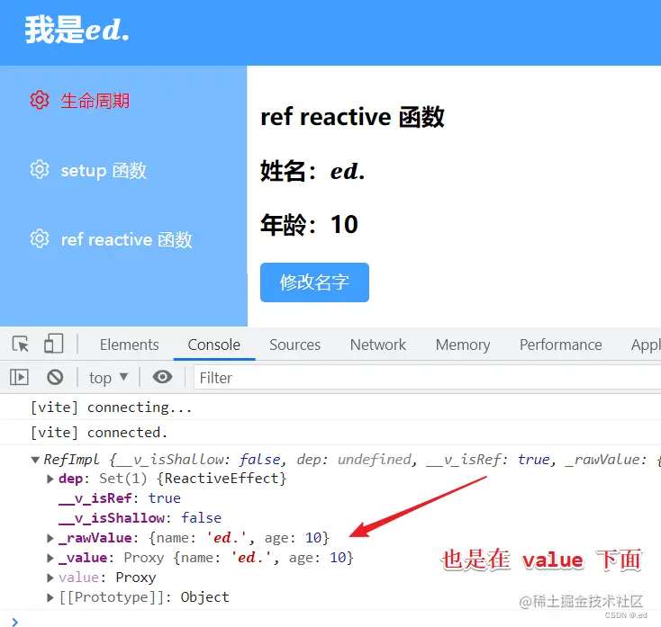 name_ref.value.name = '我是𝒆𝒅.' // 对响应式数据的value进行操作