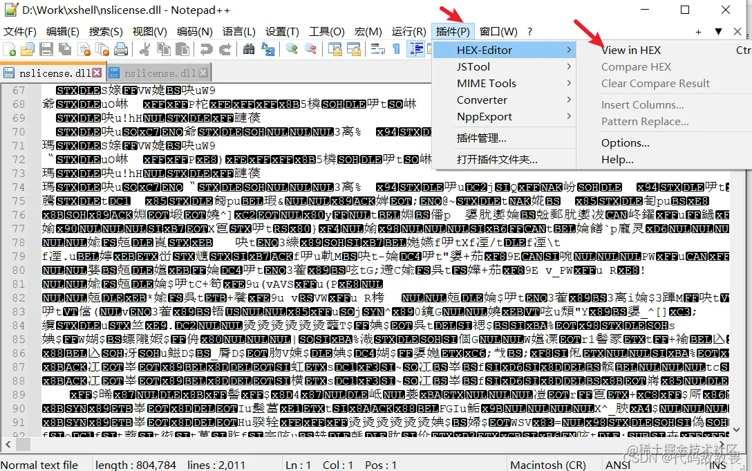 大部分博主推荐再去下载一个专门打开16进制的软件,如C32asm、Sublime Text 3等软件,但是作为一个notepad++的忠实粉丝,还是找到了在notePad++上查看及修改的办法,而且十分方便