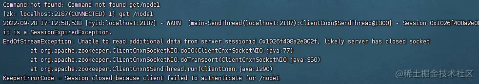 不做任何修改,直接执行./bin/zkCli.sh开启客户端,会报错如下