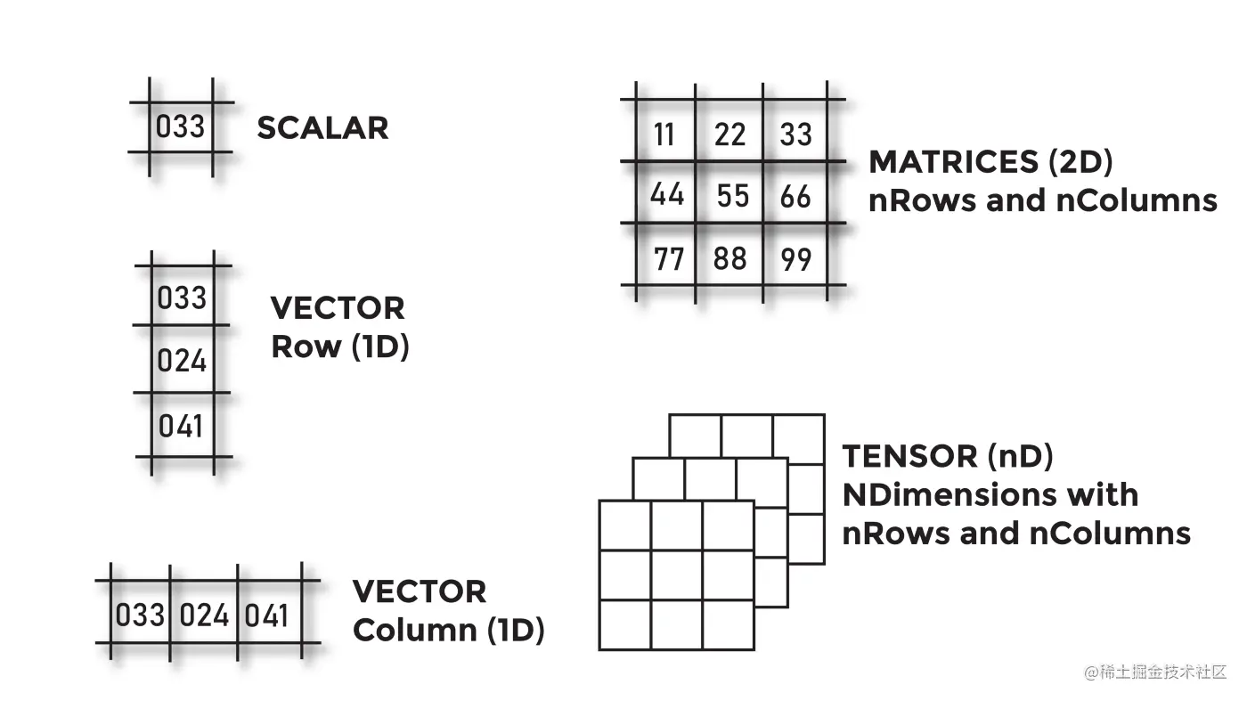 每个 ndarray 都包含一个指向其在计算机中的内存位置的指针。它还包含它的 dtype、它的形状和步幅元组。步幅是整数,表示它必须移动的字节数才能到达维度中的下一个元素。