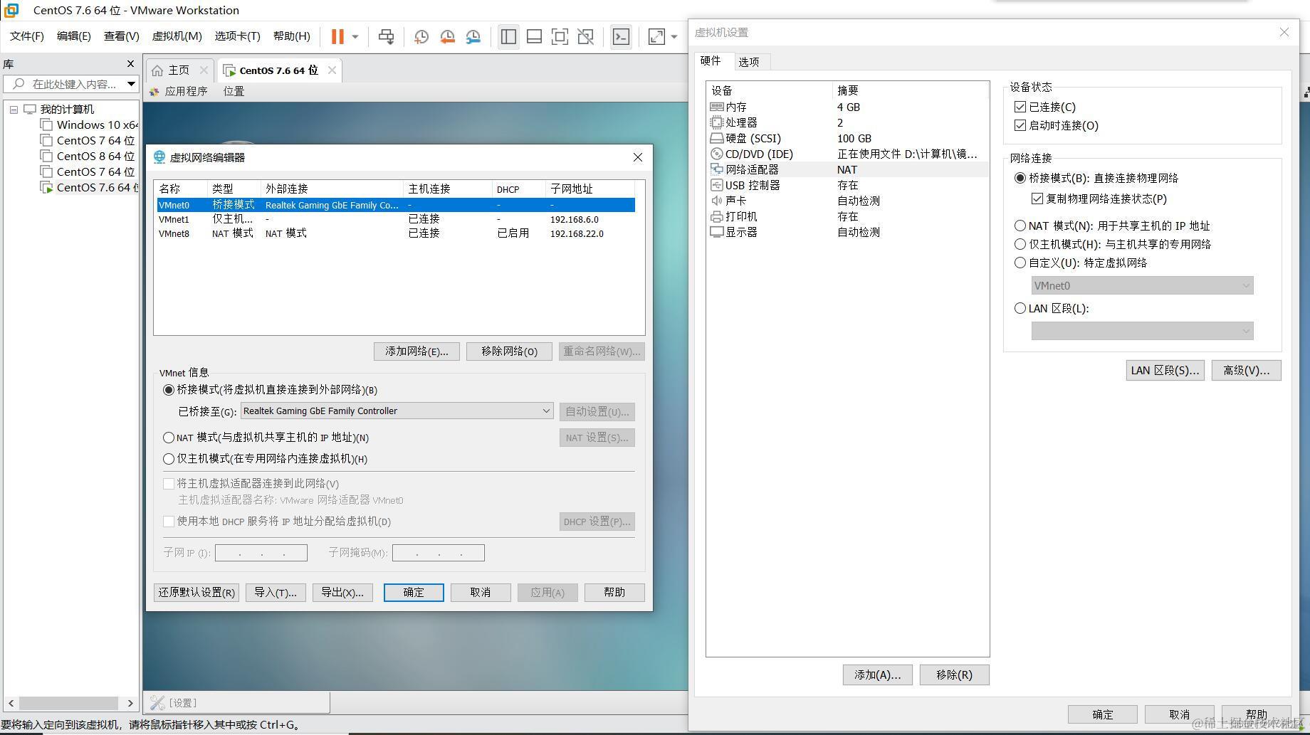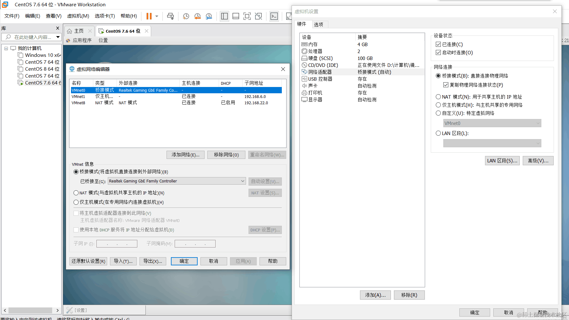 1.点击左上角编辑里的虚拟网络编辑器和右下角网络适配器,全部选择桥接模式。